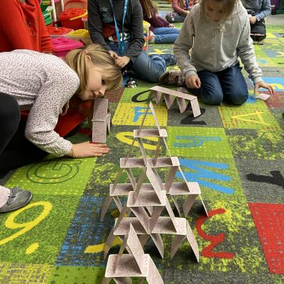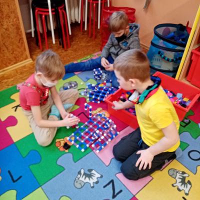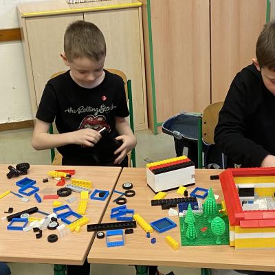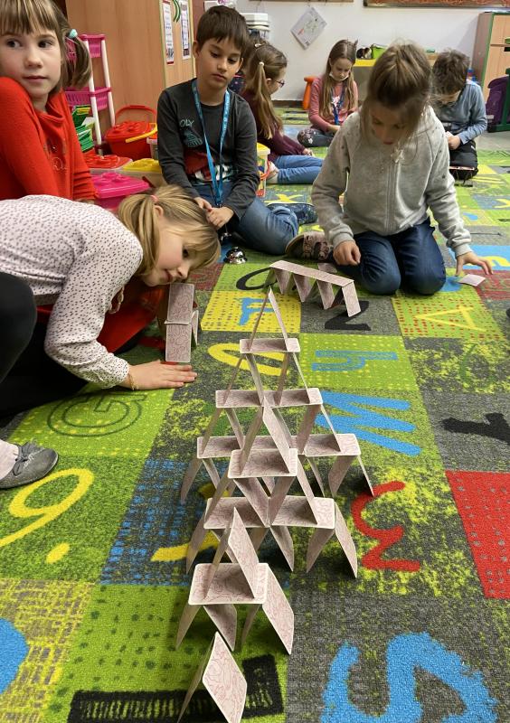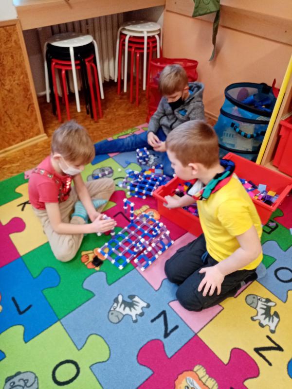 K vytváření jsme použili Lego, Sevu, dřevěné kostky, papírové roličky, papír, špejle atd.