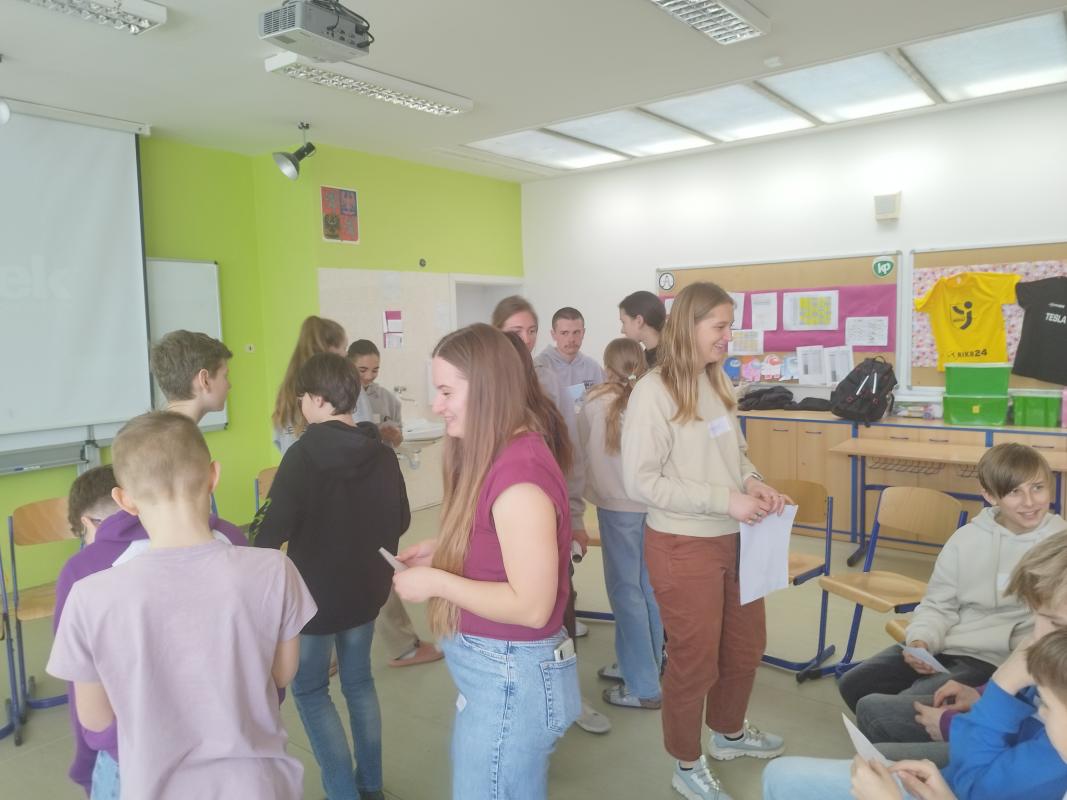 Děti si zahrály americkou obdobu konverzačního binga, odpovídaly na otázky v soutěžním kvízu a vedly intenzivní konverzaci s americkými studenty.