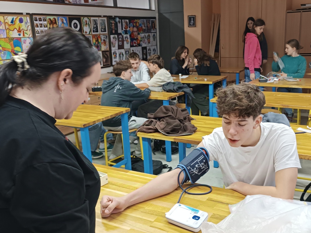 Součástí setkání byla praktická ukázka zdravotnických pomůcek, které jsou pro sestry nezbytné při každodenní práci. Žáci si vyzkoušeli měření krevního tlaku, poslouchali tlukot vlastního srdce pomocí fonendoskopu a seznámili se s dalšími praktickými dovednostmi, které zdravotníci využívají.