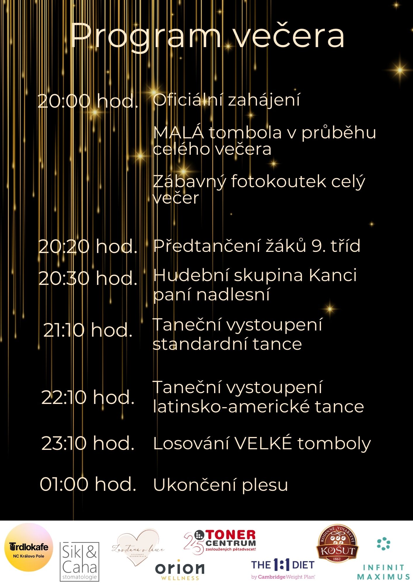 Nedílnou součástí plesu bude i tombola s atraktivními cenami. Velké poděkování patří našim štědrým sponzorům, kteří ceny do tomboly věnují:
