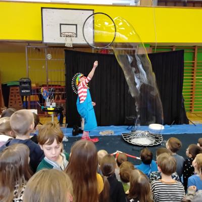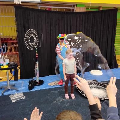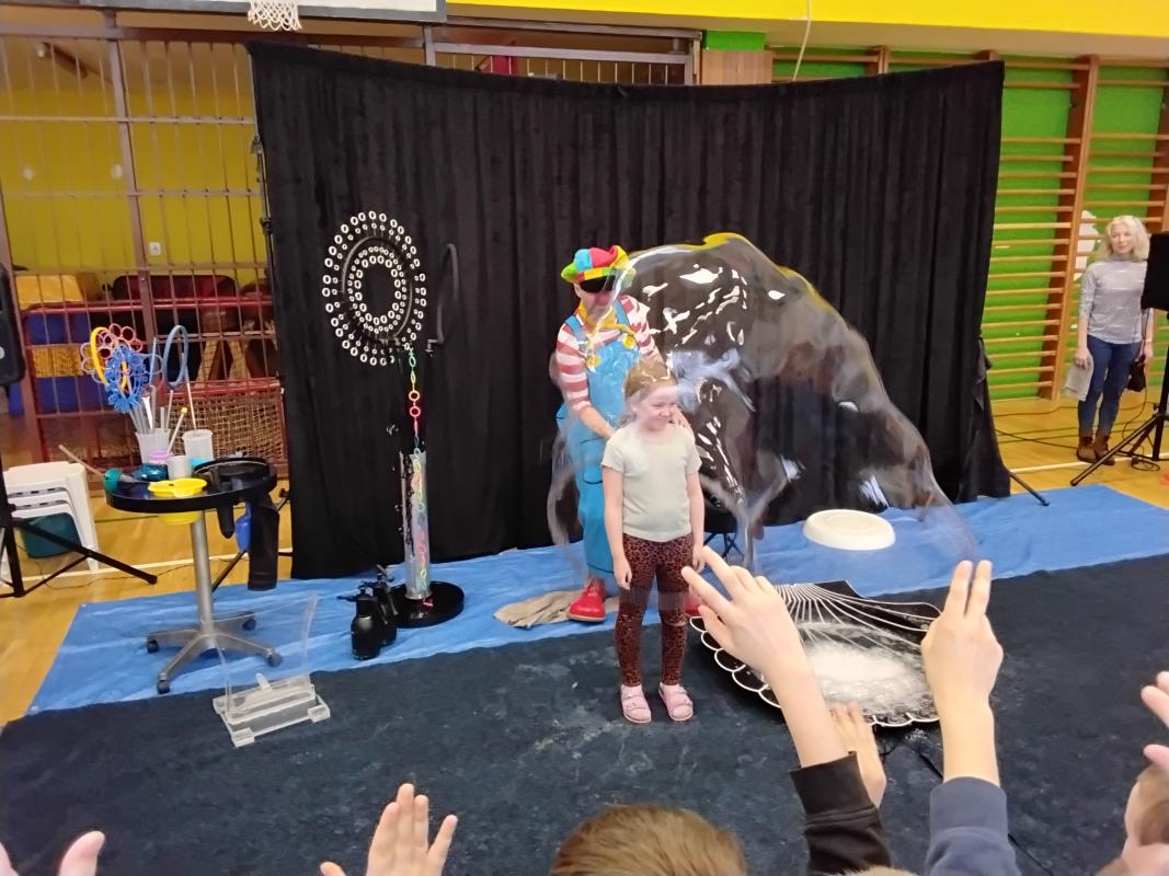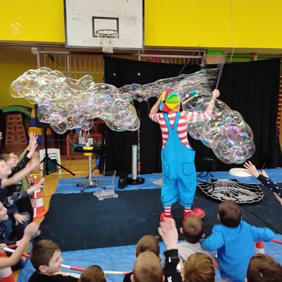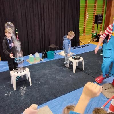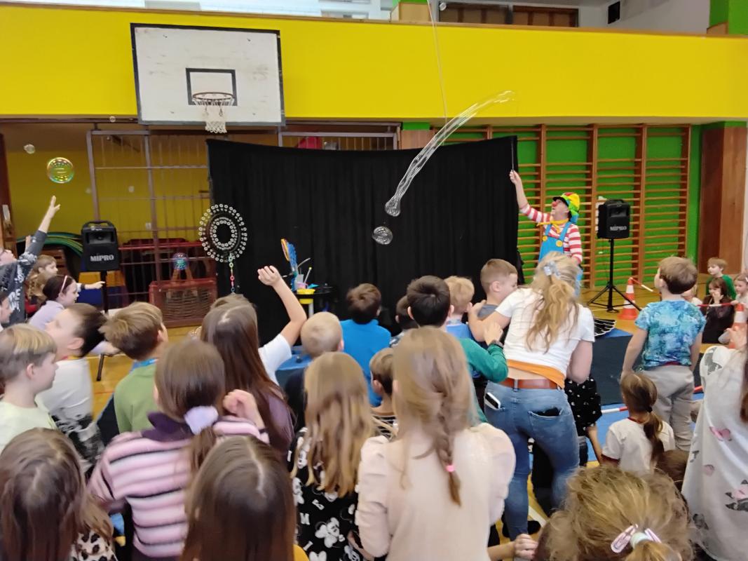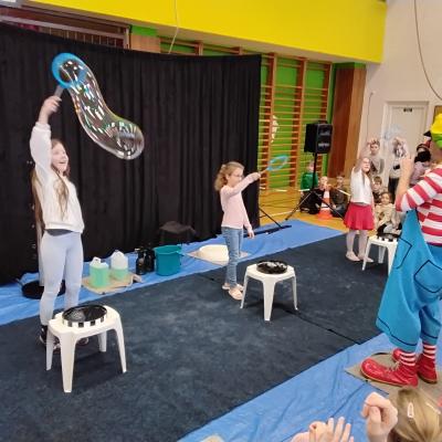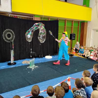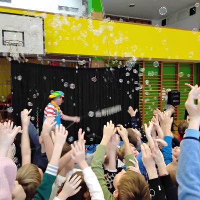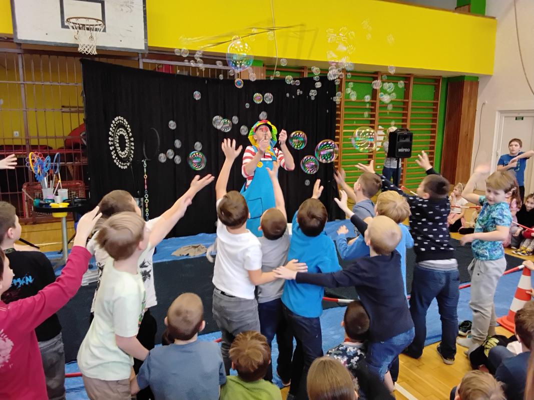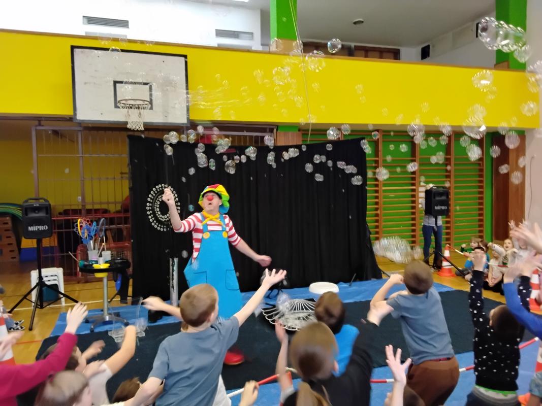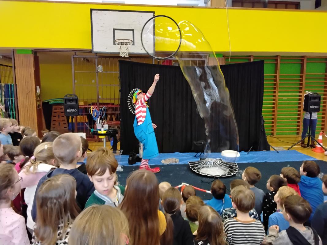 V pátek 13. 2. 2026 jsme se všichni potkali na „ Bublajícím ostrově.“ Zažili jsme jedinečnou interaktivní bublinkovou show s kouzelnou atmosférou. Show s bublinovým klaunem byla originální, hravá, rozvíjející fantazii a tvořivost. Bylo to pro nás báječné a nezapomenutelné odpolední dobrodružství.