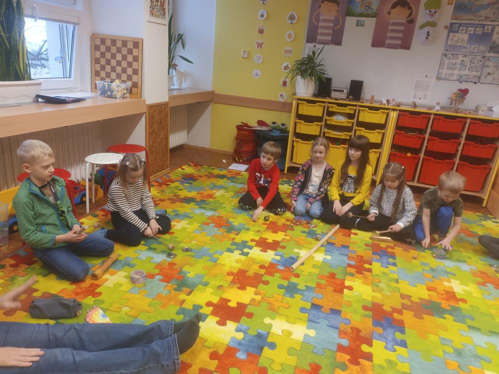 Ve středu 26.11. nás navštívila paní Veronika Pazderková, která děti inspirovala k hudebně - pohybovým aktivitám. Kde se všichni snažili rozvinout hudební i nehudební dovednosti, jako např. paměť, cit pro rytmus, nebo spolupráci.