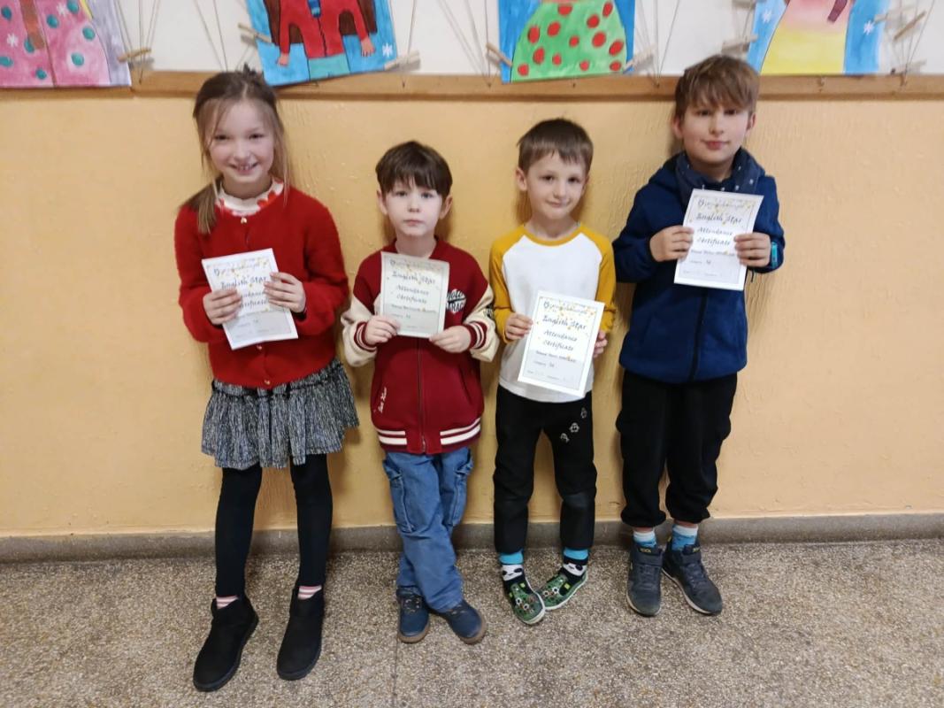 Dne 3. 4. 2026 se vybraní zástupci prvního stupně zúčastnili městského kola soutěže English Star v anglickém jazyce, která se konala na ZŠ Bakalovo nábřeží. Děti zde porovnávaly své dovednosti se soupeři ze 17 brněnských základních škol a v silné konkurenci obstály velice dobře.